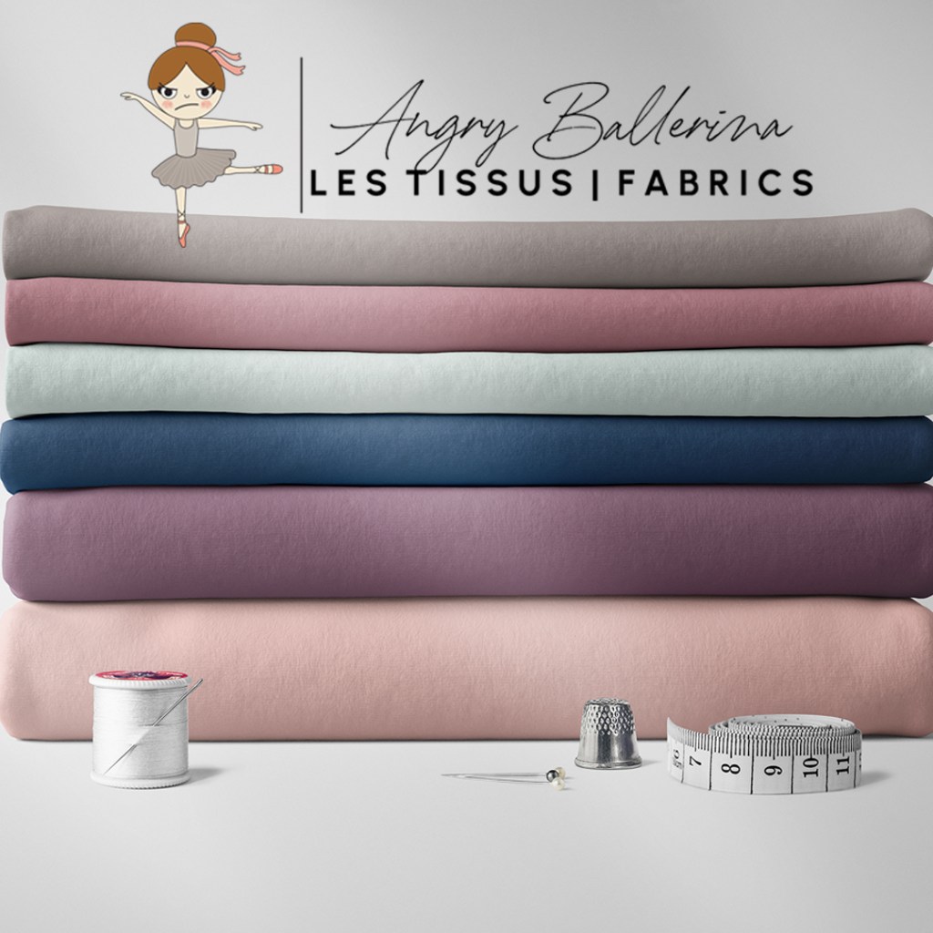 C’est ce que j’ai fait lors de mon deuxième congé de maternité. J’ai voulu répondre aux besoins des petites entreprises de confection et aux passionné(e)s de couture. J’ai ouvert Angry Ballerina et nous sommes maintenant dans la neuvième année. Dès le début, mon objectif était de me spécialiser dans le jersey, le tricot de coton et spandex, et d’avoir le plus de couleurs possible. Je voulais être le one-stop shop pour le jersey dont j’avais rêvé.